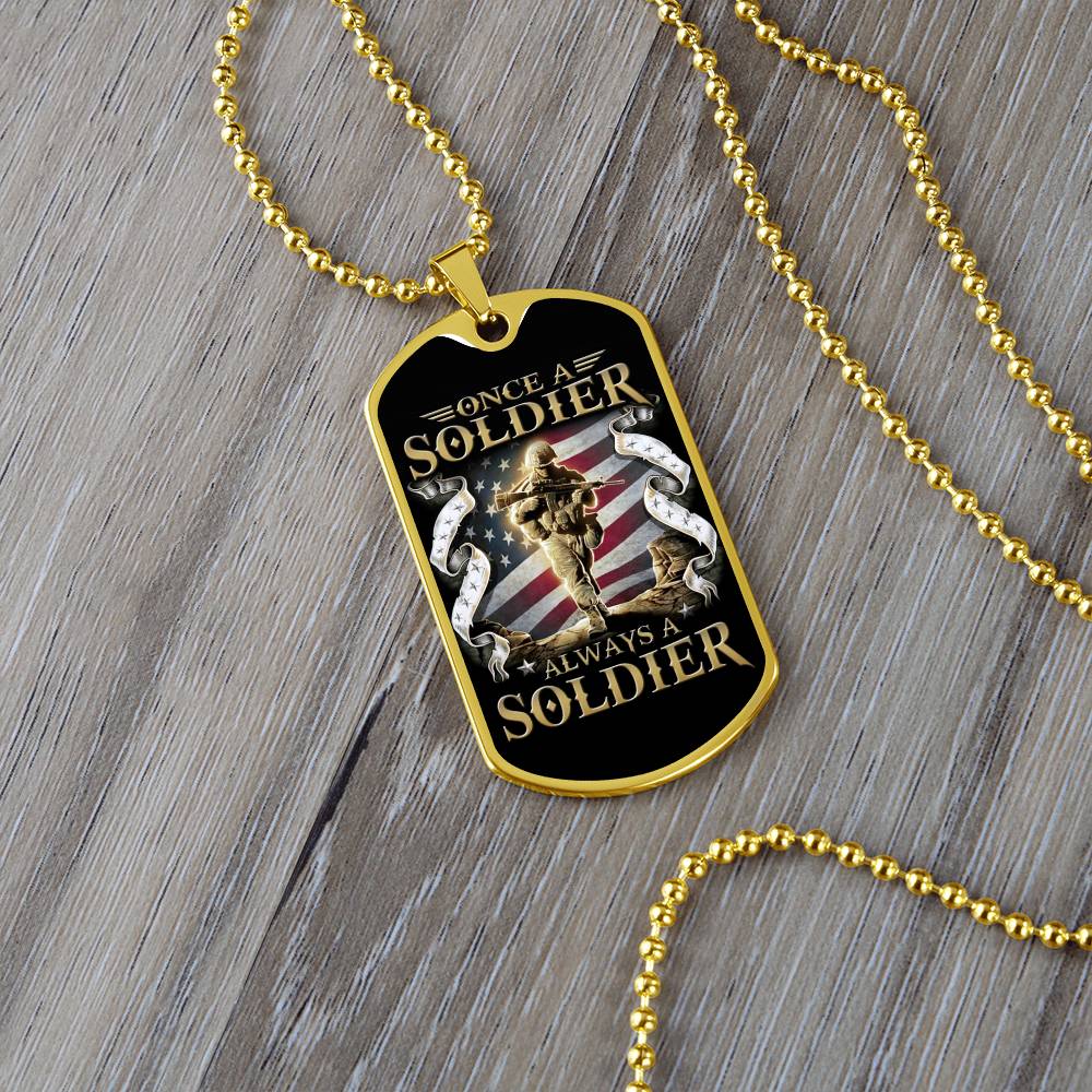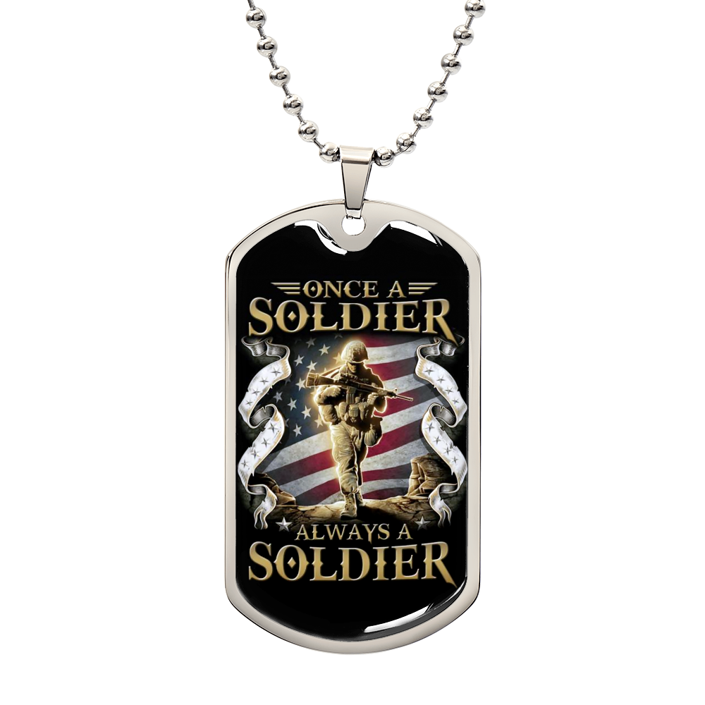 Soldier - Once A Soldier - Always A Soldier - Army - Marine - Black Dog Tag - Soldier Dog Tag - Military Ball Chain - Luxury Dog Tag